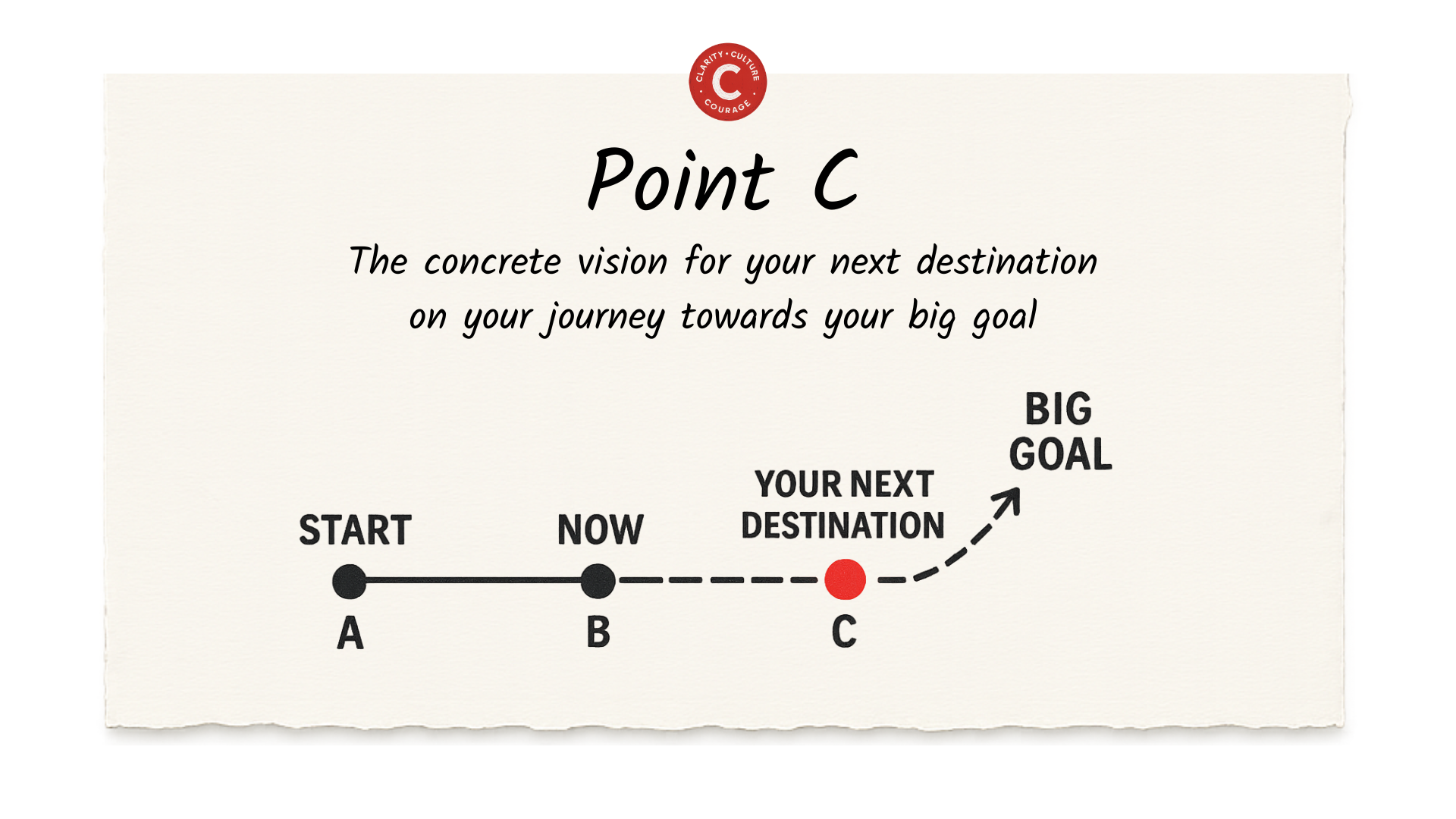 To reach your big goal, you have to clarify Point C - the concrete vision for your next destination - and chart a course to get there. When you do you've earned the opportunity to unlock: