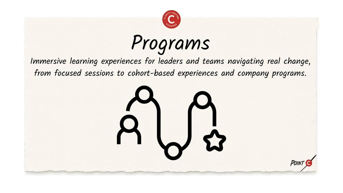 Teach your leaders innovation strategy & culture—by building a venture from scratch. The Point C Training Camp is a hands-on, immersive experience where teams don’t just learn innovation—they experience it. In this intensive, weeklong sprint, cross-functional teams build a venture from scratch—researching trends and data from