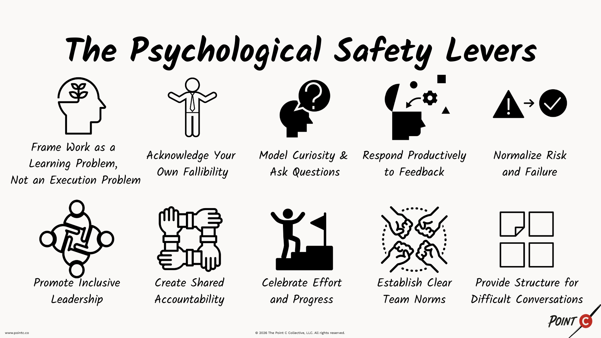 We know the importance of building psychological safety into our subculture. We know we have the agency to increase it. And we have ten levers that we can pull.