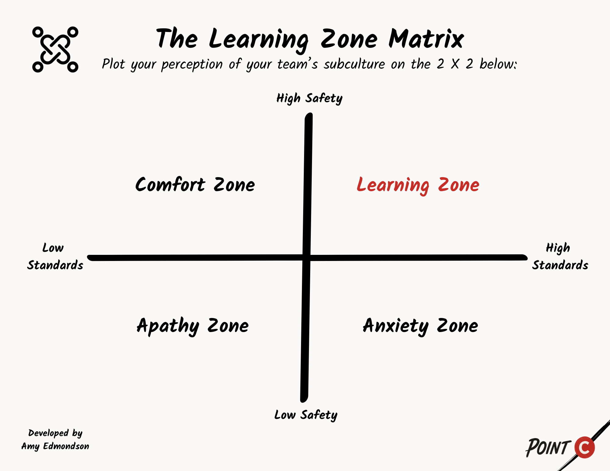 Our goal is to build a subculture in The Learning Zone. You don't have to make false trade-offs to have both high standards and high psychological safety, you just have to be intentional about both. That's what I'm here to help you do.